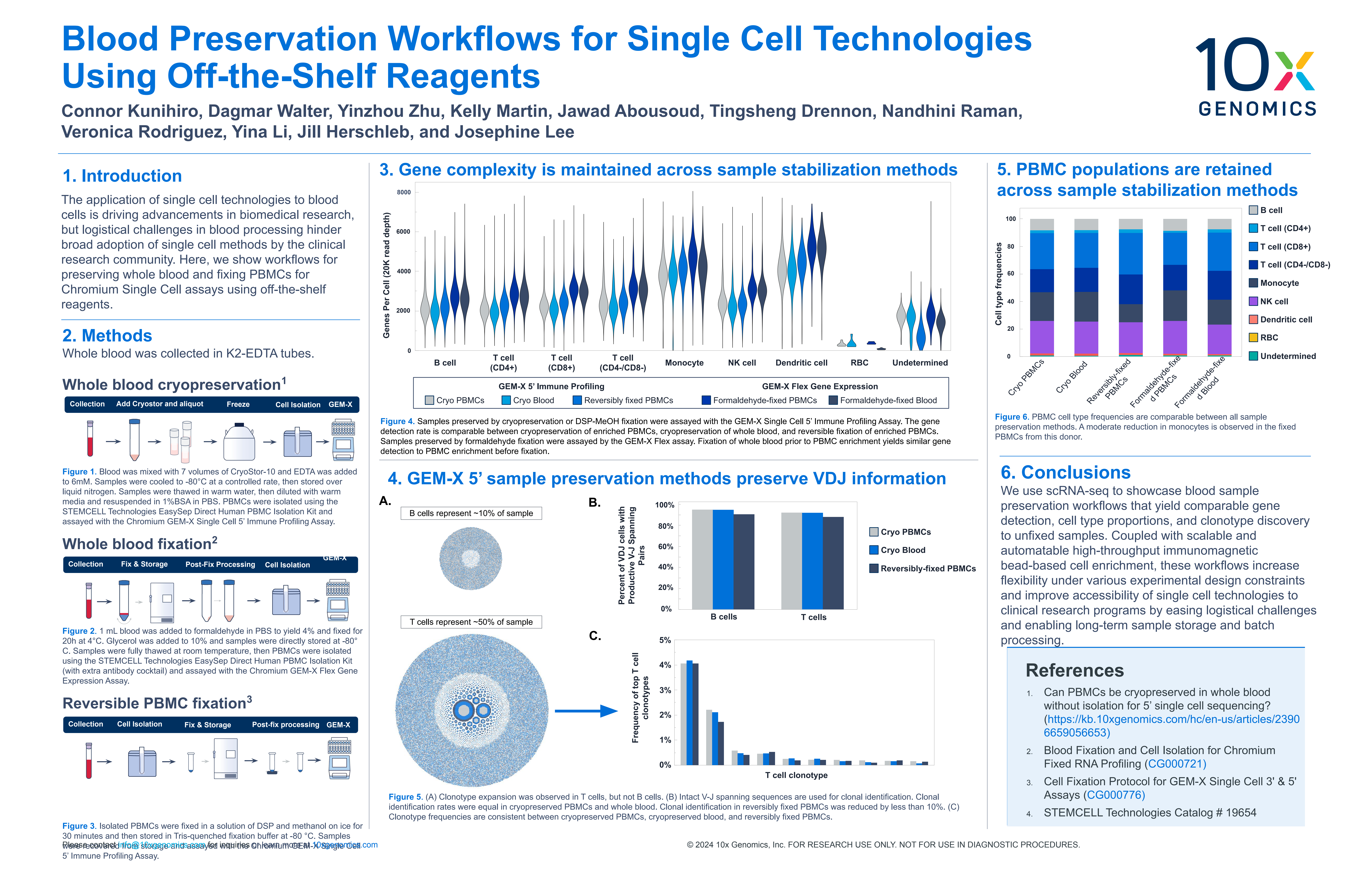 Blood preservation workflows for single cell technologies using off-the-shelf reagents