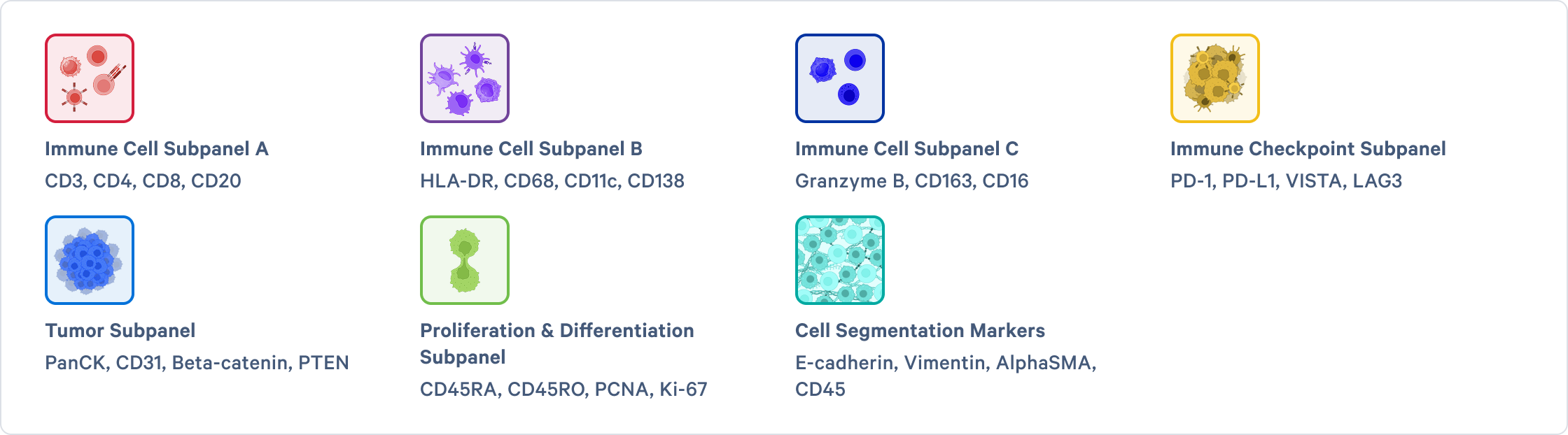 Streamline your multiomic analyses with validated subpanels for 27 human immune and tumor microenvironment markers.