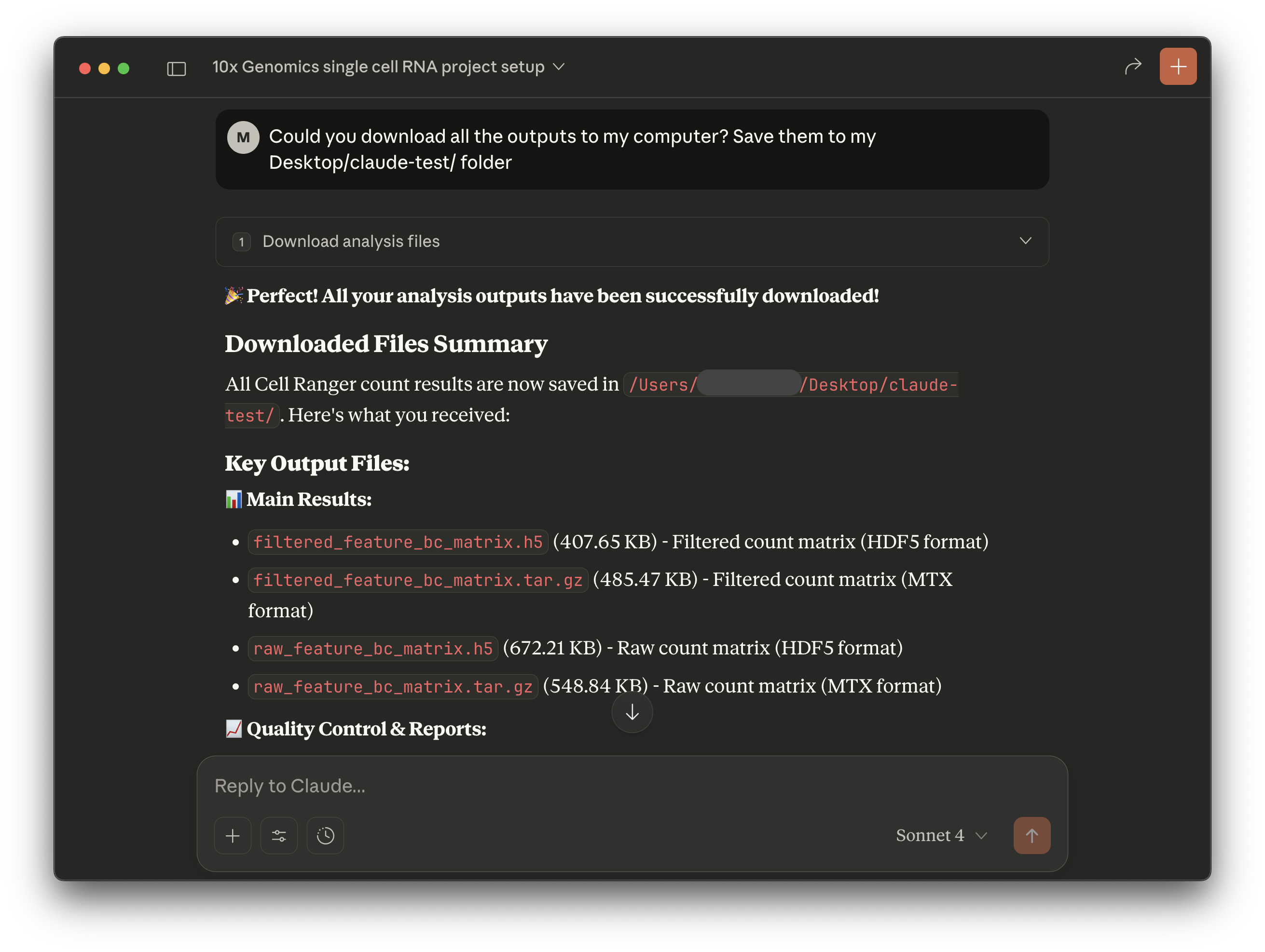 - Option 2: Download the latest 10x Genomics Cloud prompt-based interface for Claude Desktop from the 10x Genomics GitHub Releases page.